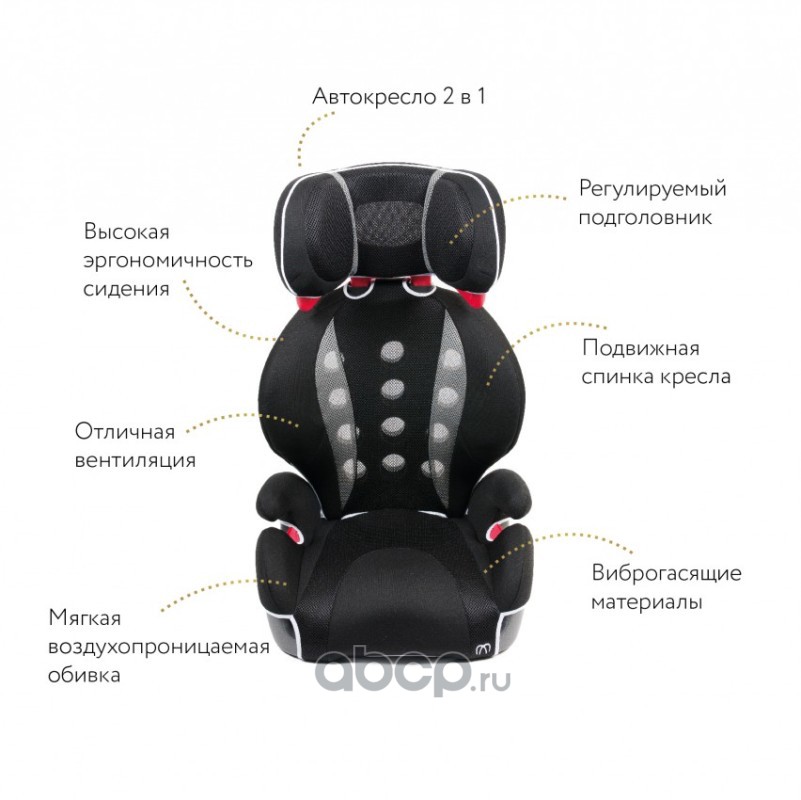 AILEBEBE ALJ205 Кресло детское автомобильное Saratto Highback Junior Quattro, группа 2/3, черно-серое