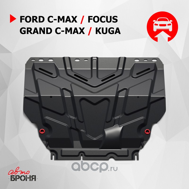 Защита картера и КПП Ford C-MAX, Focus, Grand C-MAX, Kuga крепеж в комплекте сталь 1.5 мм черный АвтоБроня