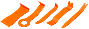 Расширенное описание: • Предназначен для демонтажа элементов декоративных обшивок салона автомобиля.• Состоит из пяти съёмников различной формы.• Материал – ударопрочный пластик.• Позволяет произвести арматурные работы без повреждения лакокрасочного покрытия и элементов обшивки.• Поставляется в индивидуальной блистерной упаковке.