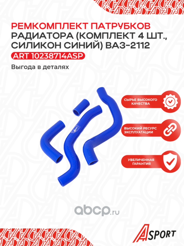 Патрубок радиатора охлаждения для а/м ВАЗ 2112, компл. 4 шт., силикон, синий |