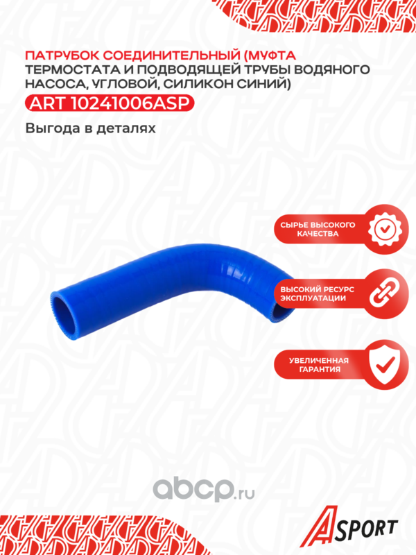 Патрубок (шланг) соединительный термостата и водяного насоса для а/м ВАЗ 2108-099; 2110-12; 2113-15; 2170-72, (угол), силикон, синий |
