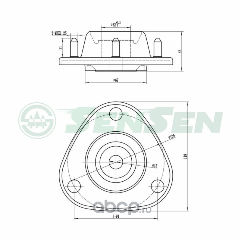 Sensen M61145 Опора амортизатора переднего для а/м MITSUBISHI PAJERO PININ/IO H61W-H77W 99-05