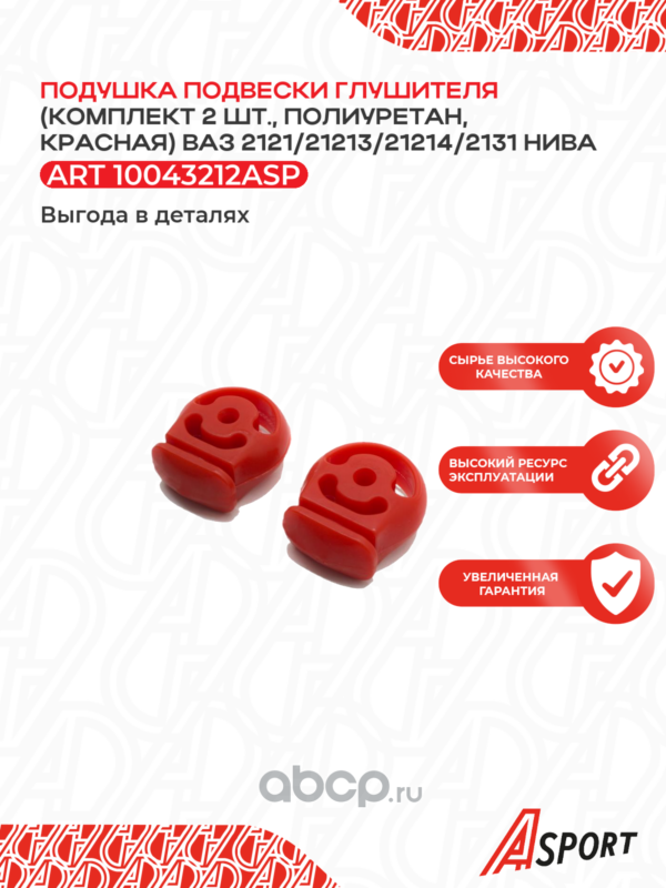 Расширенное описание: р/к подушек глушителя НИВА 21213*2шт (полиуретан, красный) A-sport-P