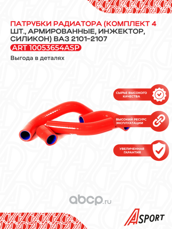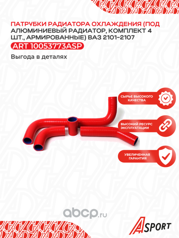 Патрубок радиатора охлаждения для а/м ВАЗ 2105, 2107, под алюминиевый радиатор, компл. 4 шт., армированн, силикон, Красно-синий