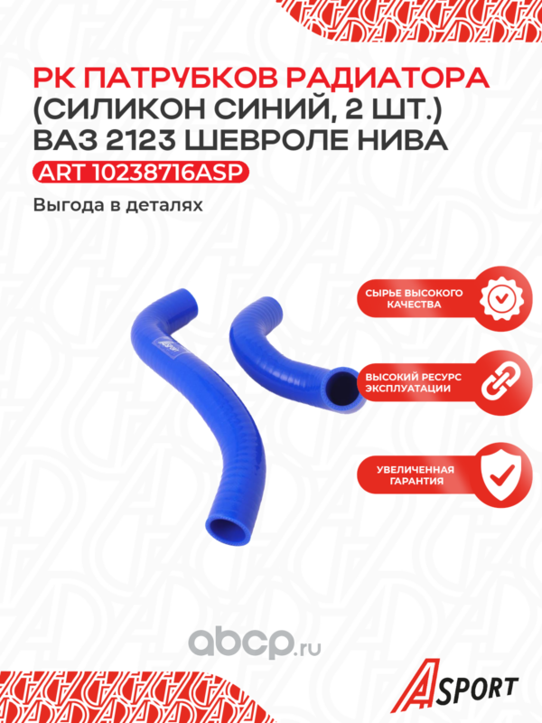 Патрубок отопителя для а/м ВАЗ 2123; Chevrolet Niva, компл. 2 шт., силикон, синий