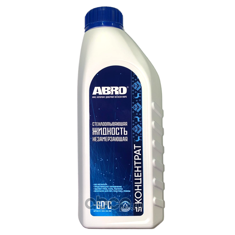All World Cars - продажа Омыватель АБРО Зимняя жидкость стеклоомывателя -60 1л. концентрат артикул WW516RW по всей России и странах СНГ. Развитая сеть представительств с быстрой доставкой товаров бренда ABRO и гарантией выгодной цены. Покупая в AWC товар ABRO каталожный номер WW516RW вы бережете свое время, нервы и деньги.