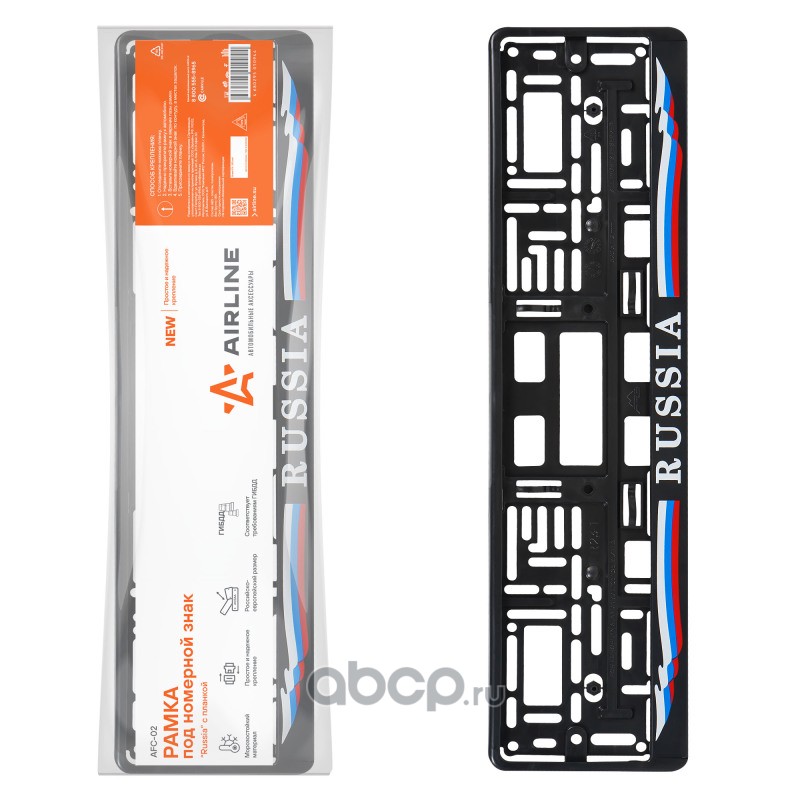 All World Cars - продажа Рамка под номерной знак Russia артикул AFC02 по всей России и странах СНГ. Развитая сеть представительств с быстрой доставкой товаров бренда AIRLINE и гарантией выгодной цены. Покупая в AWC товар AIRLINE каталожный номер AFC02 вы бережете свое время, нервы и деньги.