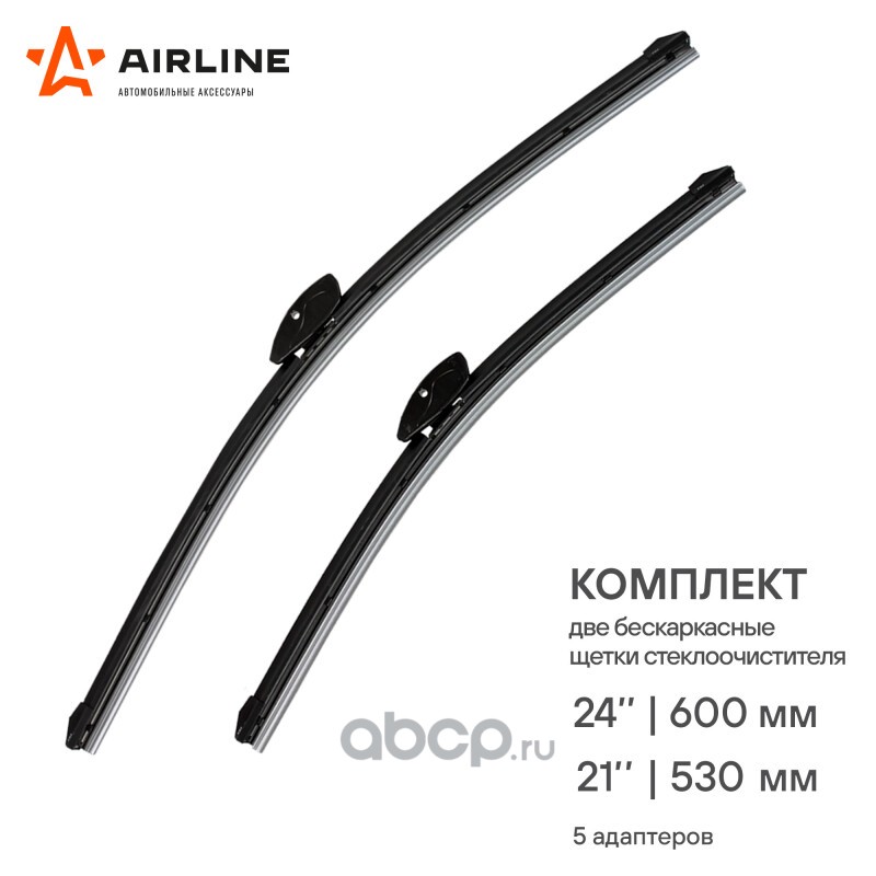 Расширенное описание: Щетки стеклоочистителя 600/530мм (24""/21"") бескаркасные для а/м Volkswagen Tiguan (07-17), Mitsubishi ASX (10-)/Outlander II (06-12), Skoda Kodiaq (16-), Changan CS95 (17-), Mercedes-Benz Sprinter (95-06), комплект, 3 типа адаптеров