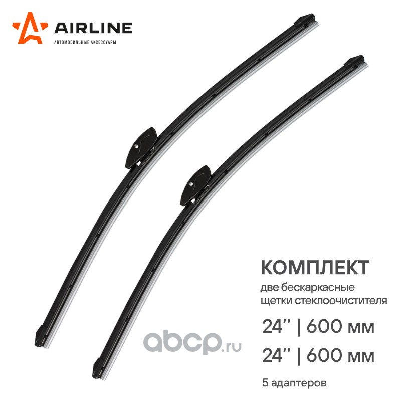 Расширенное описание: Щетки стеклоочистителя 600/600мм (24""/24"") бескаркасные для а/м VW Transporter T5 (03-15), Mercedes-Benz E-Class (08-16)/C-Class (07-14), Iveco Daily (99-14), комплект, 4 типа адаптеров