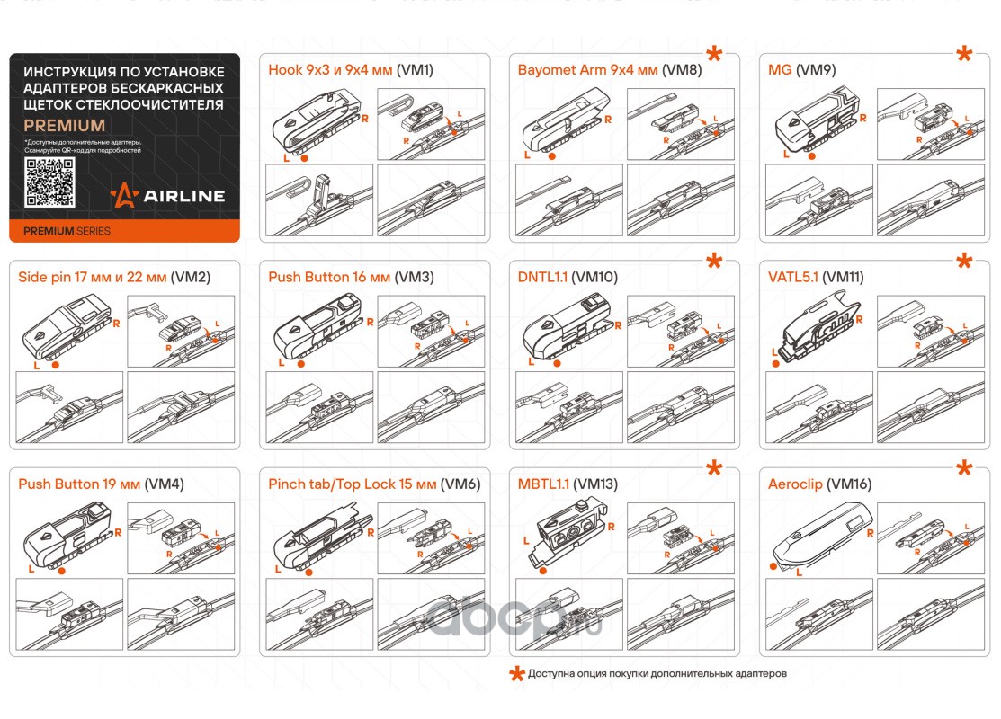 Расширенное описание: Щетка стеклоочистителя бескаркас PREMIUM 430мм (17"") 5 адаптеров