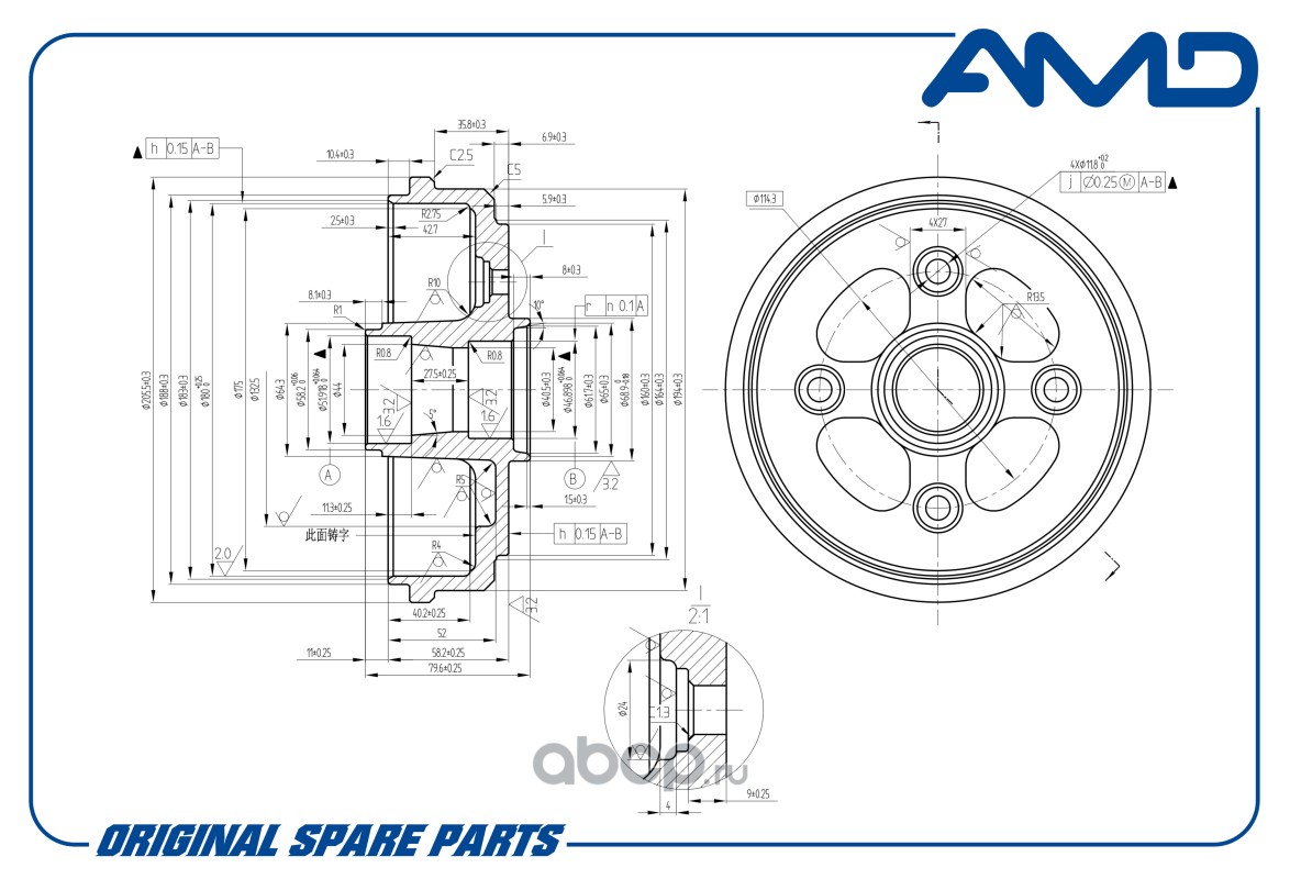 Расширенное описание: Барабан тормозной 96316636/AMD.BD158 AMD