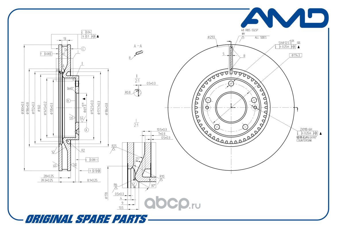 Диск тормозной передний HYUNDAI (i30 FD) (2007-2012) (i30 GD) (2011-) KIA AMD AMD.BD199