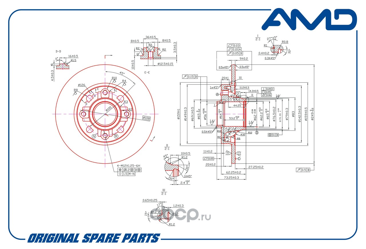 Расширенное описание: Диск заднего тормоза 4249.66/AMD.BD485 (в сборе с подш.) AMD