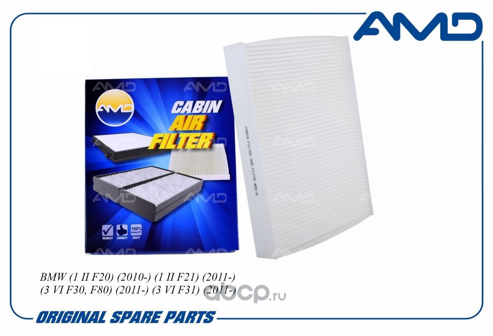 All World Cars - продажа Фильтр салонный BMW (1 II F20) (2010-) (1 II F21) (2011-) (3 VI F3 AMD AMD.FC778 артикул AMDFC778 по всей России и странах СНГ. Развитая сеть представительств с быстрой доставкой товаров бренда AMD и гарантией выгодной цены. Покупая в AWC товар AMD каталожный номер AMDFC778 вы бережете свое время, нервы и деньги.