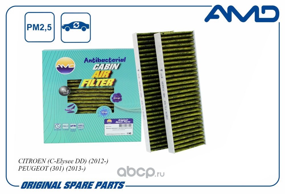 Расширенное описание: Фильтр салонный 9814237680/AMD.FC883A (антибактериальный, угольный) (2шт) AMD