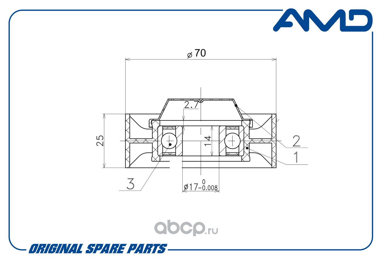 Расширенное описание: Ролик ремня поликлинового, натяжной 21230-1041056-10/AMD.GT219 AMD