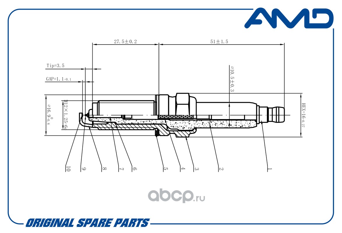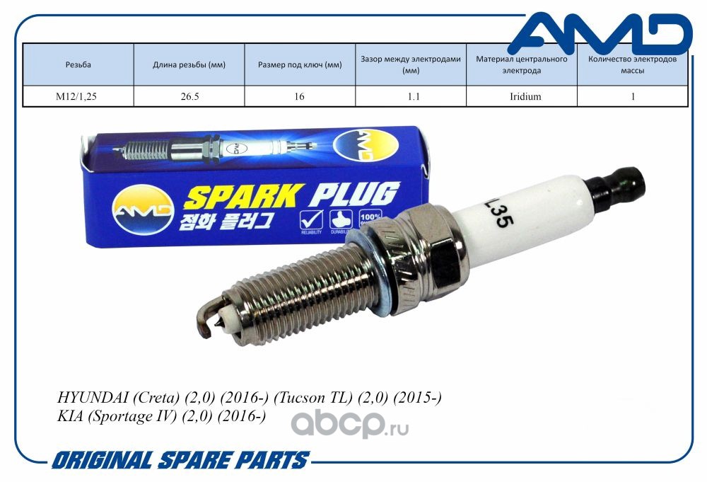 Расширенное описание: Свеча зажигания 18846-11070/SILZKR7B11/AMD.PL35 (Iridium) AMD