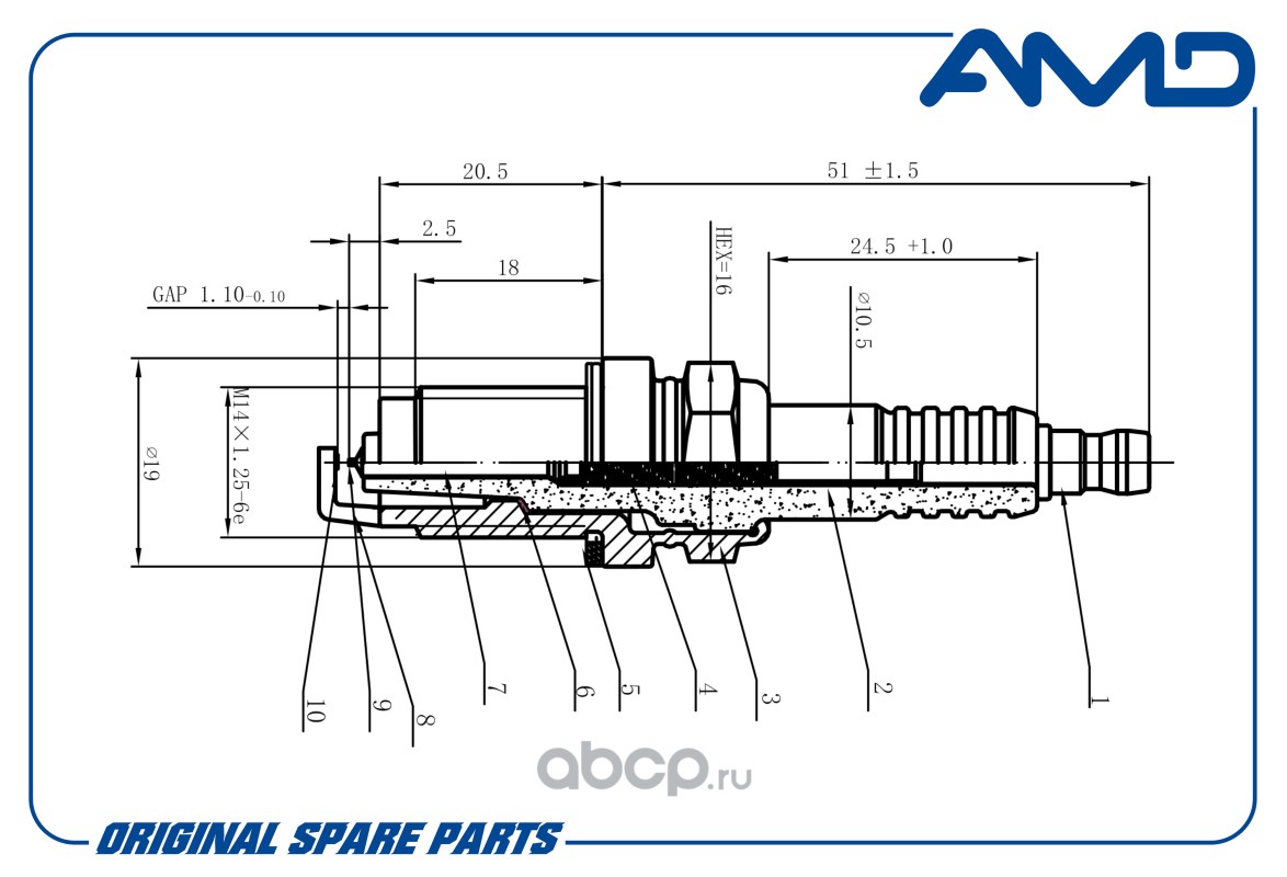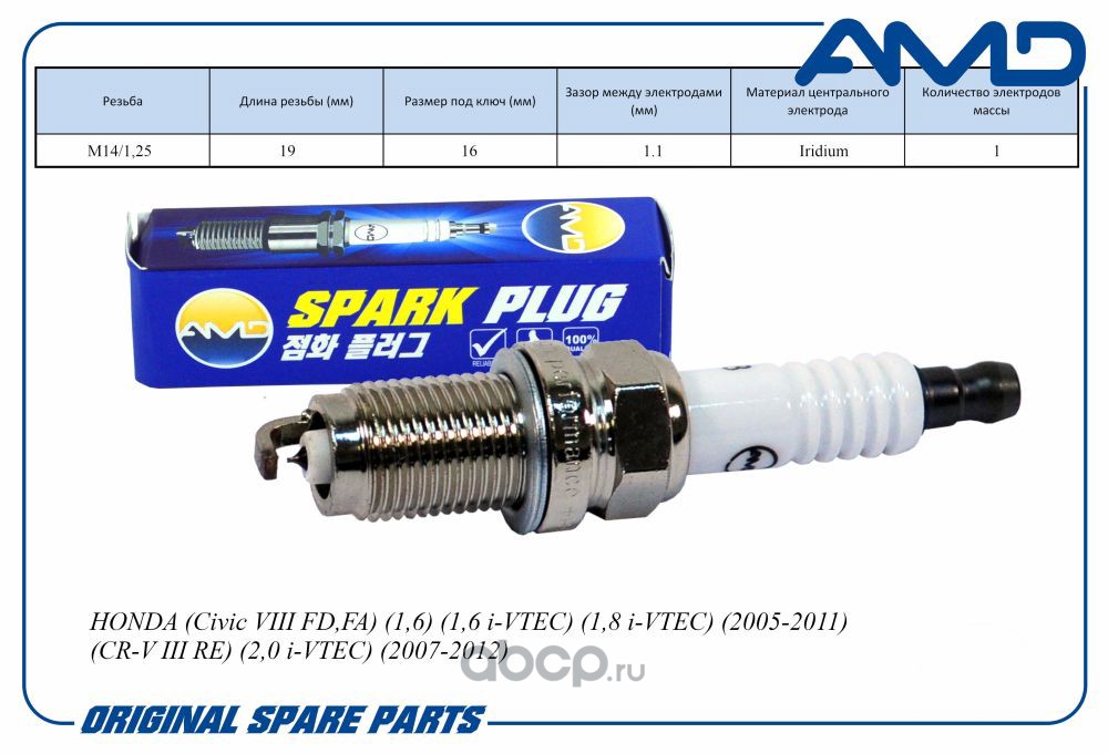 Расширенное описание: Свеча зажигания 9807B-561-BW/IZFR6K11S/AMD.PL98 (Iridium) AMD