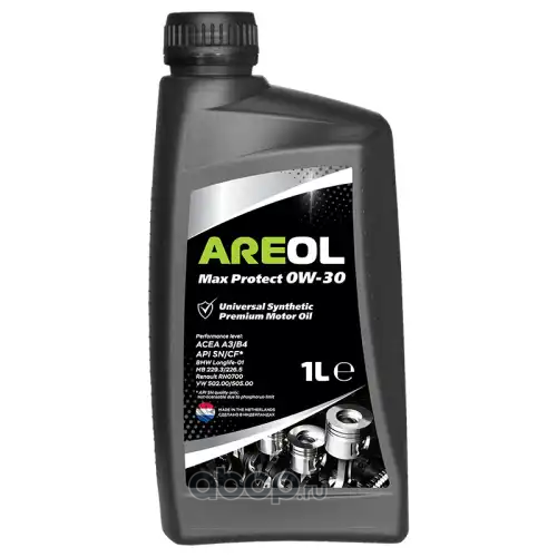 All World Cars - продажа AREOL Max Protect 0W30 (1L)_масло моторное! синт ACEA A3/B4, API SN/CF, MB 229.3/226.5, VW 502.00 артикул 0W30AR057 по всей России и странах СНГ. Развитая сеть представительств с быстрой доставкой товаров бренда AREOL и гарантией выгодной цены. Покупая в AWC товар AREOL каталожный номер 0W30AR057 вы бережете свое время, нервы и деньги.
