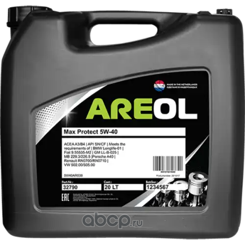 All World Cars - продажа AREOL Max Protect 5W40 (20L)_масло моторное! синт ACEA A3/B4, API SN/CF, VW 502.00/505.00 артикул 5W40AR038 по всей России и странах СНГ. Развитая сеть представительств с быстрой доставкой товаров бренда AREOL и гарантией выгодной цены. Покупая в AWC товар AREOL каталожный номер 5W40AR038 вы бережете свое время, нервы и деньги.