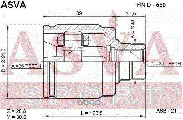 ШРУС ВНУТРЕННИЙ ЛЕВЫЙ 36X40X31