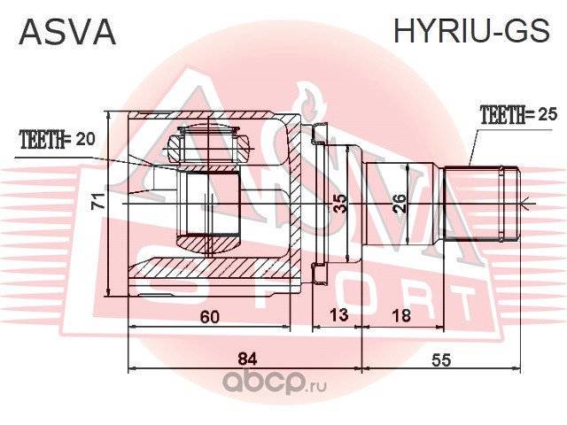 ШРУС ВНУТРЕННИЙ ЗАДНИЙ 20X35X25