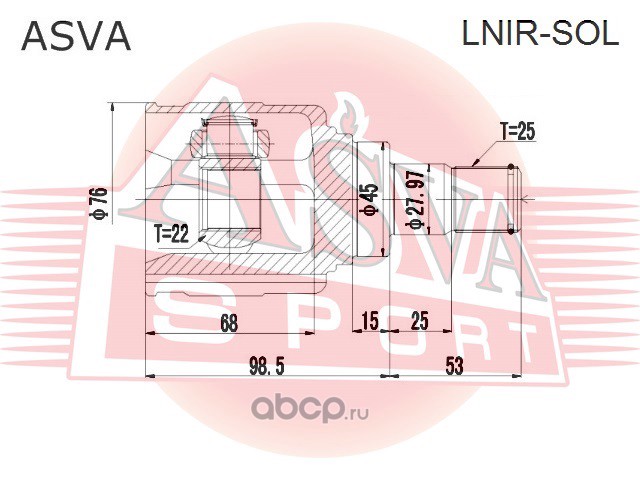 All World Cars - продажа ШРУС внутренний правый 22x45x25 артикул LNIRSOL по всей России и странах СНГ. Развитая сеть представительств с быстрой доставкой товаров бренда ASVA и гарантией выгодной цены. Покупая в AWC товар ASVA каталожный номер LNIRSOL вы бережете свое время, нервы и деньги.