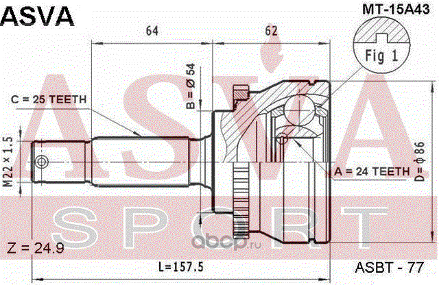 ASVA MT33A43 ШРУС НАРУЖНЫЙ 24x54x25