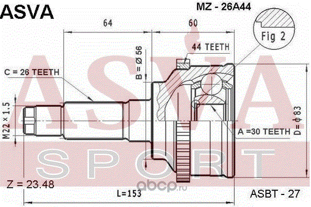 Sat MZ009 Шрус (Спереди/ Наруж) Mazda 323 89-95 / 626 87-97 / Cronos 91-95 / Familia 89-94