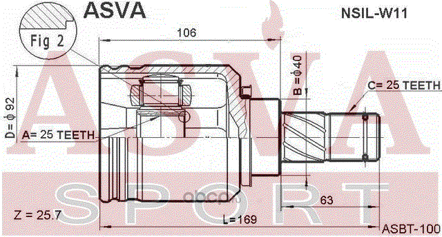 ШРУС ВНУТРЕННИЙ ЛЕВЫЙ 25x40x25