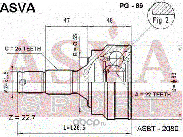 Расширенное описание: ШРУС НАРУЖНЫЙ 22x55x25 PEUGEOT305/405,CITROEN BX/ZX(N2)