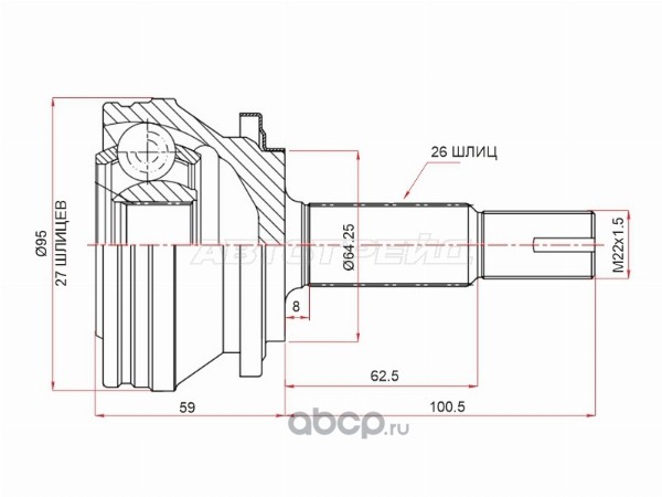 Amiwa 2440858 ШРУС НАРУЖНЫЙ 27X70X26