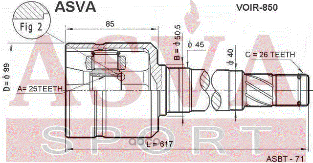 Расширенное описание: ШРУС ВНУТРЕННИЙ ПРАВЫЙ 25x50.5x26 VOLVO : 850 C70 S70 V70