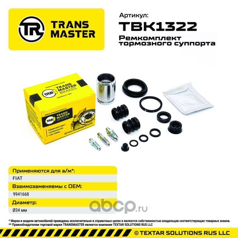 TRANSMASTER TBK1322 Ремкомплект тормозного суппорта
