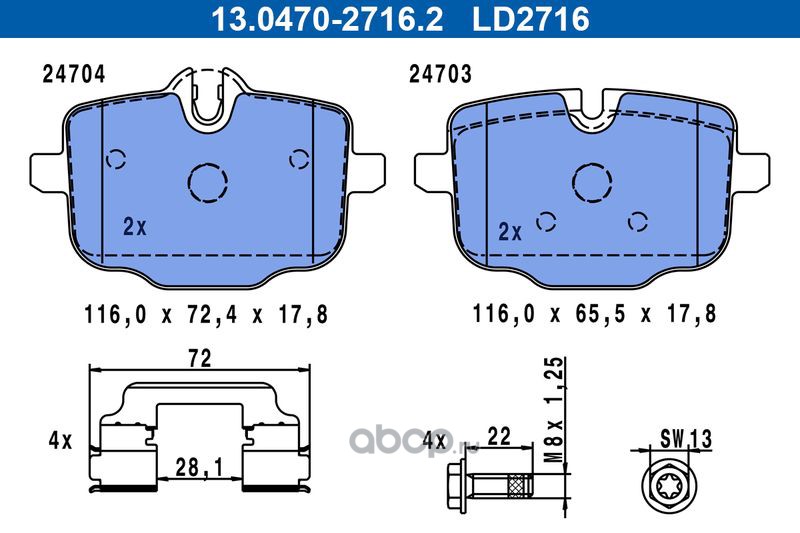Ate 13047027162 Комплект тормозных колодок