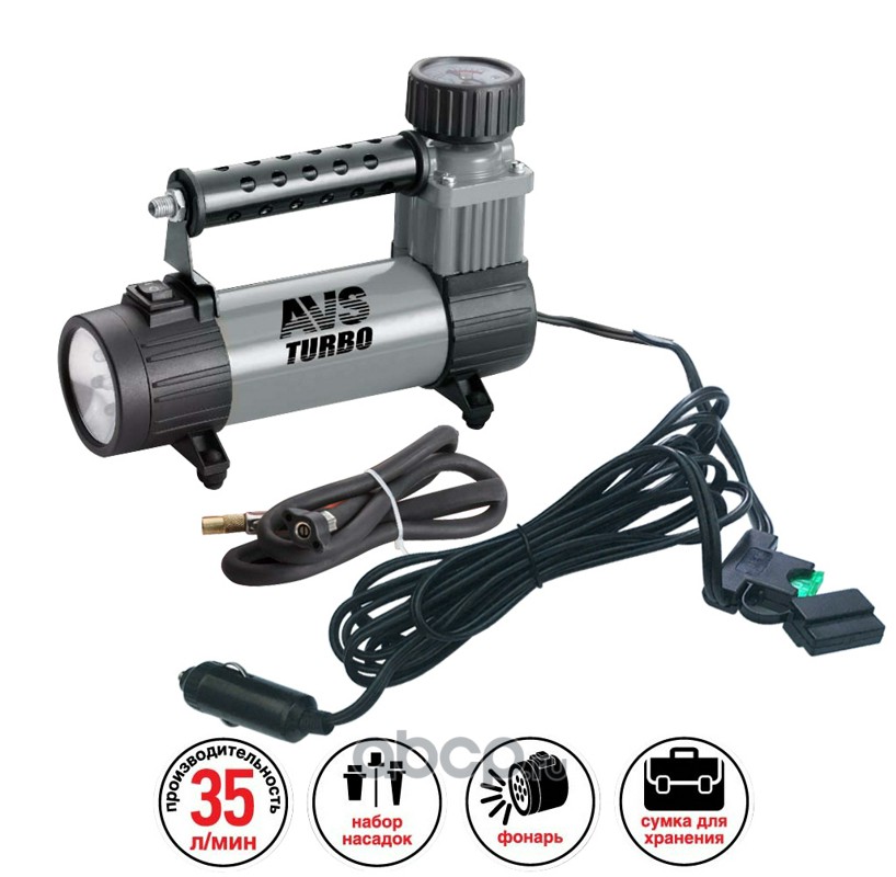 Расширенное описание: Автомобильный компрессор AVS "KS350L" предназначен для накачки воздухом шин легковых и коммерческих автомобилей. Рабочее напряжение компрессора - 12В. Высокая производительность делает возможным более широкое применение. Автомобильный компрессор может быть использован для накачки мячей, матрасов, проведения покрасочных работ.