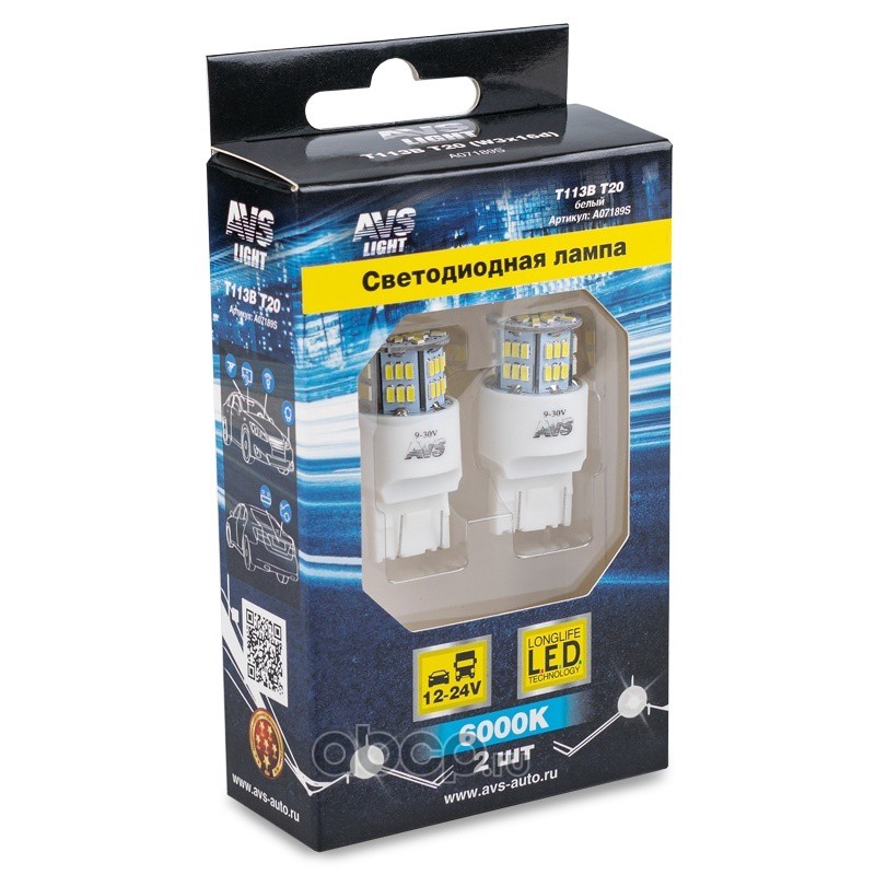 All World Cars - продажа T113B T20/белый/(W3*16D) 54SMD 3014, 2 contact, коробка 2 шт. артикул A07189S по всей России и странах СНГ. Развитая сеть представительств с быстрой доставкой товаров бренда AVS и гарантией выгодной цены. Покупая в AWC товар AVS каталожный номер A07189S вы бережете свое время, нервы и деньги.