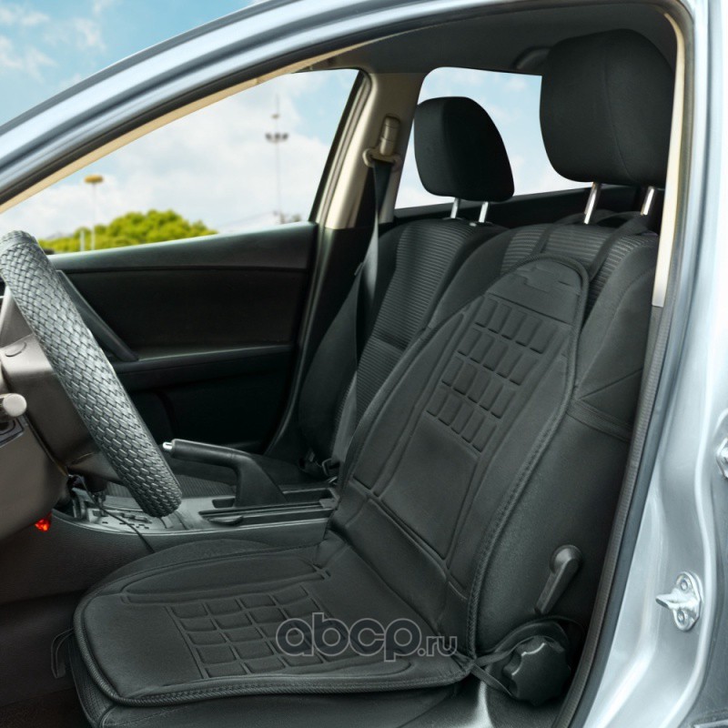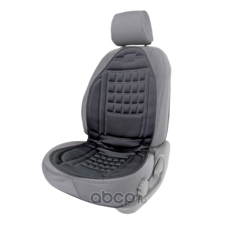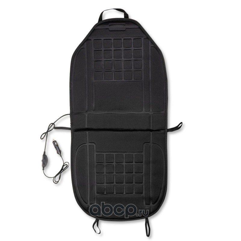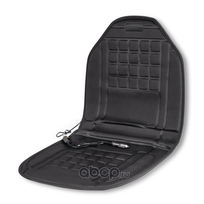 Габаритные размеры: 96х48 см Питание от прикуривателя автомобиля: 12 В Потребляемая мощность: 35-45 Вт 2 уровня нагрева Макс температура нагрева: 65°С Функция автоотключения Массажная текстура Материал: текстиль Цвет: черный Длина кабеля: 135 см