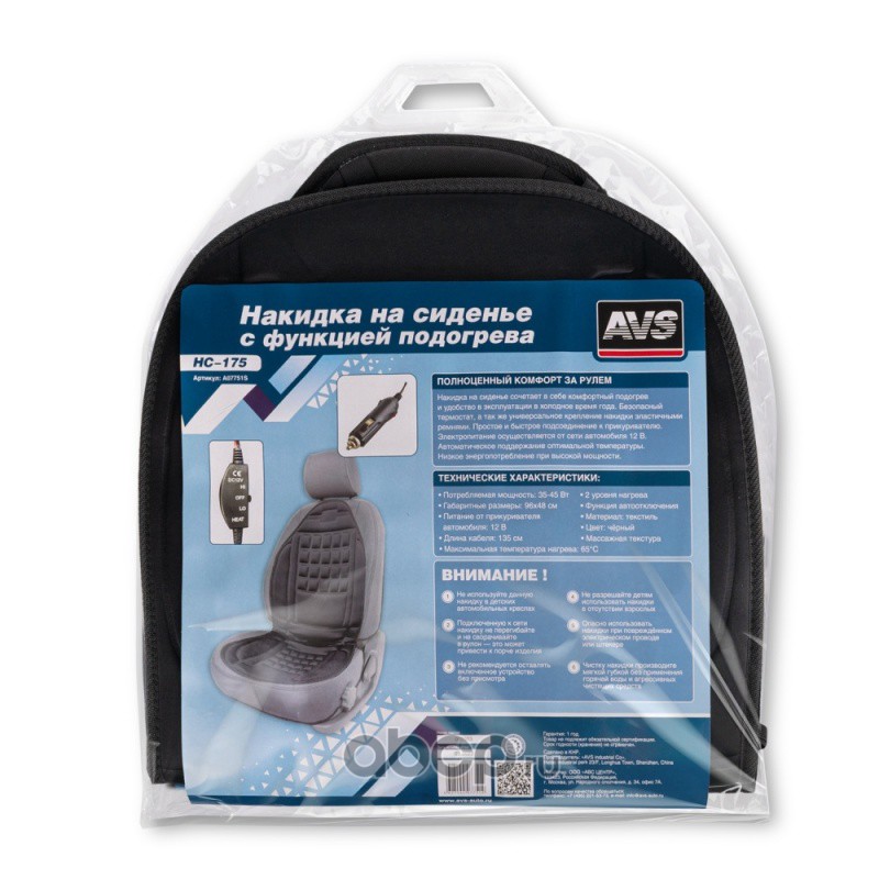 All World Cars - продажа Накидка на сиденье с функцией подогрева AVS HC-175 артикул A07751S по всей России и странах СНГ. Развитая сеть представительств с быстрой доставкой товаров бренда AVS и гарантией выгодной цены. Покупая в AWC товар AVS каталожный номер A07751S вы бережете свое время, нервы и деньги.
