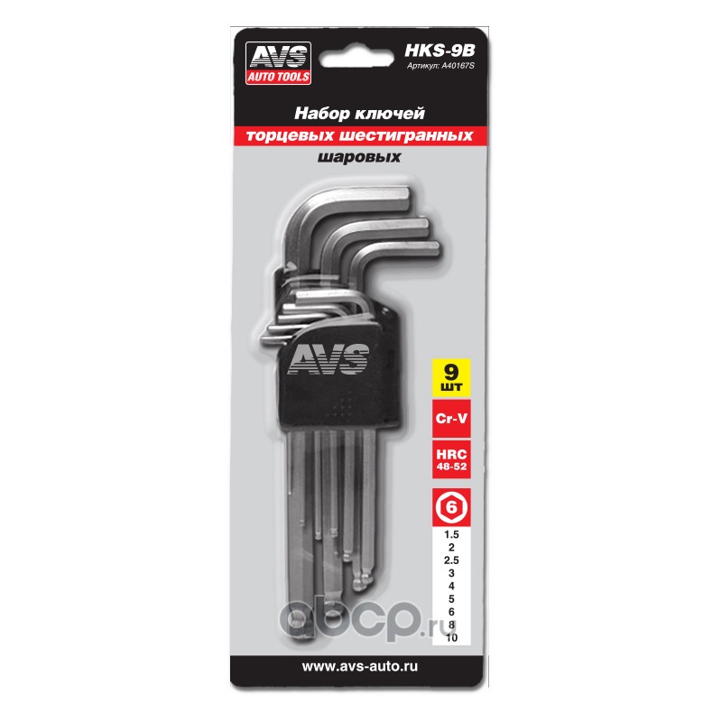 All World Cars - продажа Набор ключей торцевых шестигранных шаровых 9 предметов (1,5-10мм) AVS HKS-9B артикул A40167S по всей России и странах СНГ. Развитая сеть представительств с быстрой доставкой товаров бренда AVS и гарантией выгодной цены. Покупая в AWC товар AVS каталожный номер A40167S вы бережете свое время, нервы и деньги.