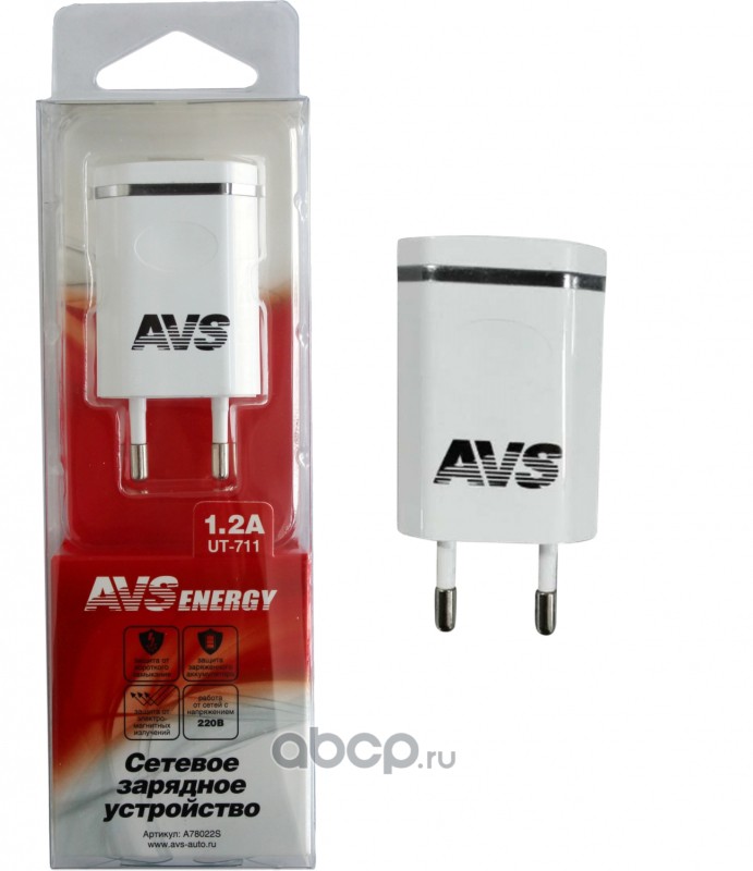 All World Cars - продажа USB сетевое зарядное устройство AVS 1 порт UT-711 (1,2А) артикул A78022S по всей России и странах СНГ. Развитая сеть представительств с быстрой доставкой товаров бренда AVS и гарантией выгодной цены. Покупая в AWC товар AVS каталожный номер A78022S вы бережете свое время, нервы и деньги.