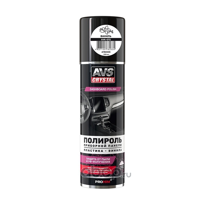 Быстродействующий состав очищает и восстанавливает первоначальный цвет пластика. Образующаяся при распылении пена очищает и восстанавливает первоначальный цвет пластика. Придаёт обрабатываемой поверхности ухоженный вид, создавая матовое покрытие, обладающее стойкими антистатическими свойствами. Препятствует оседанию пыли. Защищает от выцветания и воздействия ультрафиолетовых лучей. Обладает приятным ароматом различных оттенков.