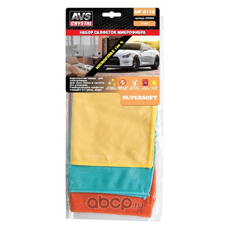 All World Cars - продажа 13 Набор салфеток от пыли, для стекол, полировки AVS MF-6118 (3шт разные, 30х35, 30х30, 30х25см) артикул A78283S по всей России и странах СНГ. Развитая сеть представительств с быстрой доставкой товаров бренда AVS и гарантией выгодной цены. Покупая в AWC товар AVS каталожный номер A78283S вы бережете свое время, нервы и деньги.