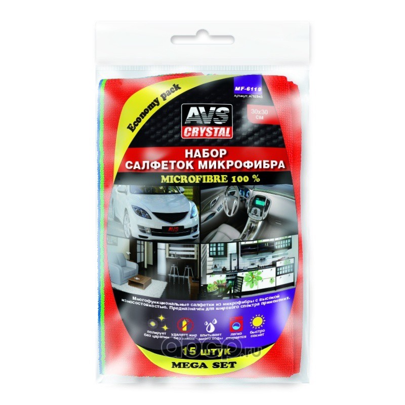 All World Cars - продажа 14 Набор салфеток экономичный для комплексной очистки AVS MF-6119 (микроф.- 15шт, 30х30см) артикул A78284S по всей России и странах СНГ. Развитая сеть представительств с быстрой доставкой товаров бренда AVS и гарантией выгодной цены. Покупая в AWC товар AVS каталожный номер A78284S вы бережете свое время, нервы и деньги.
