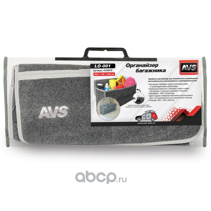 All World Cars - продажа Органайзер войлочный в багажник AVS LO-001 артикул A78437S по всей России и странах СНГ. Развитая сеть представительств с быстрой доставкой товаров бренда AVS и гарантией выгодной цены. Покупая в AWC товар AVS каталожный номер A78437S вы бережете свое время, нервы и деньги.