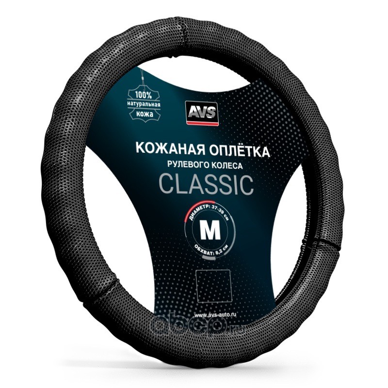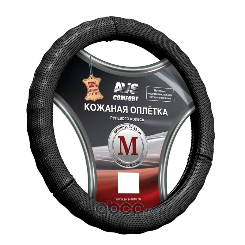 Чехол руля AVS GL-296M-B Size M натуральная кожа 37-39 см. черный