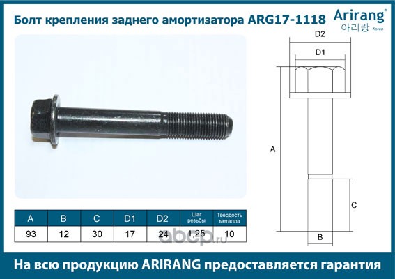 Болт крепления задн. амортизатора M12x1.25x93