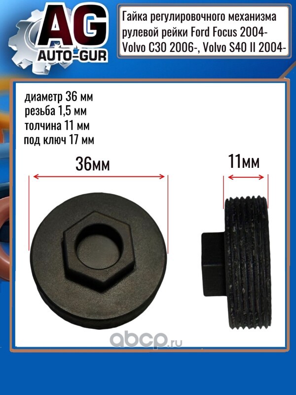 Расширенное описание: Гайка регулировочного механизма рулевой рейки Ford Focus 2004-; Volvo C30 2006- ;Volvo S40 II 2004-