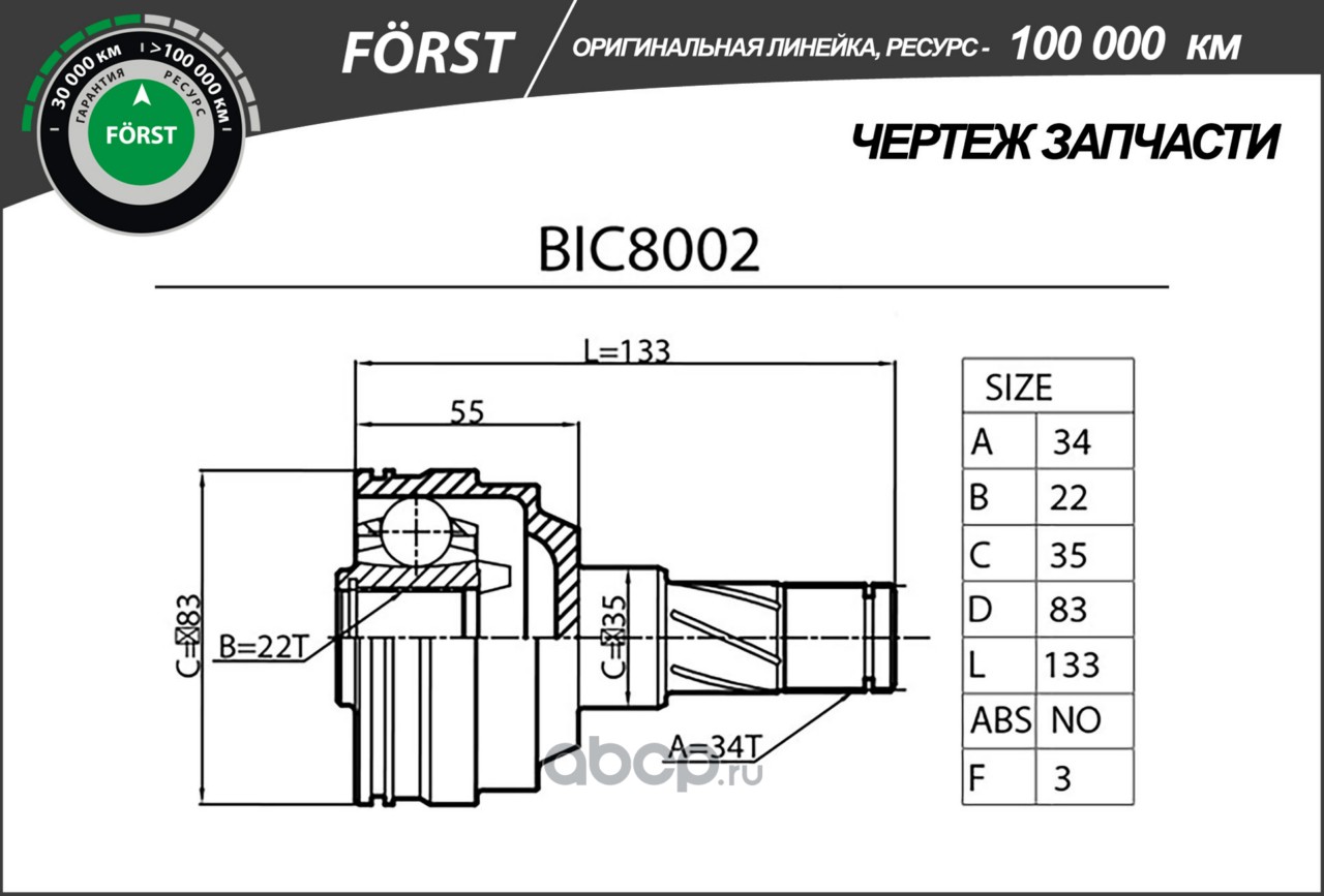Расширенное описание: Шрус DAEWOO Lanos (97-), Nexia (95-) (внутр.) [34/22] (BIC8002) B-RING FÖRST