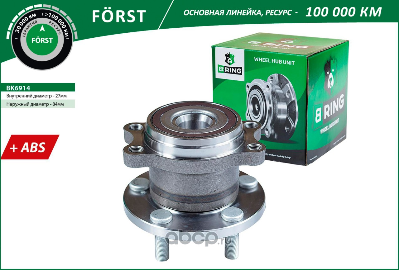 Расширенное описание: Ступица с подшип. в сборе SUBARU Legacy III (98-), Outback (00-) (задн.) [d=124 с ABS] (BK6914) B-RING FÖRST